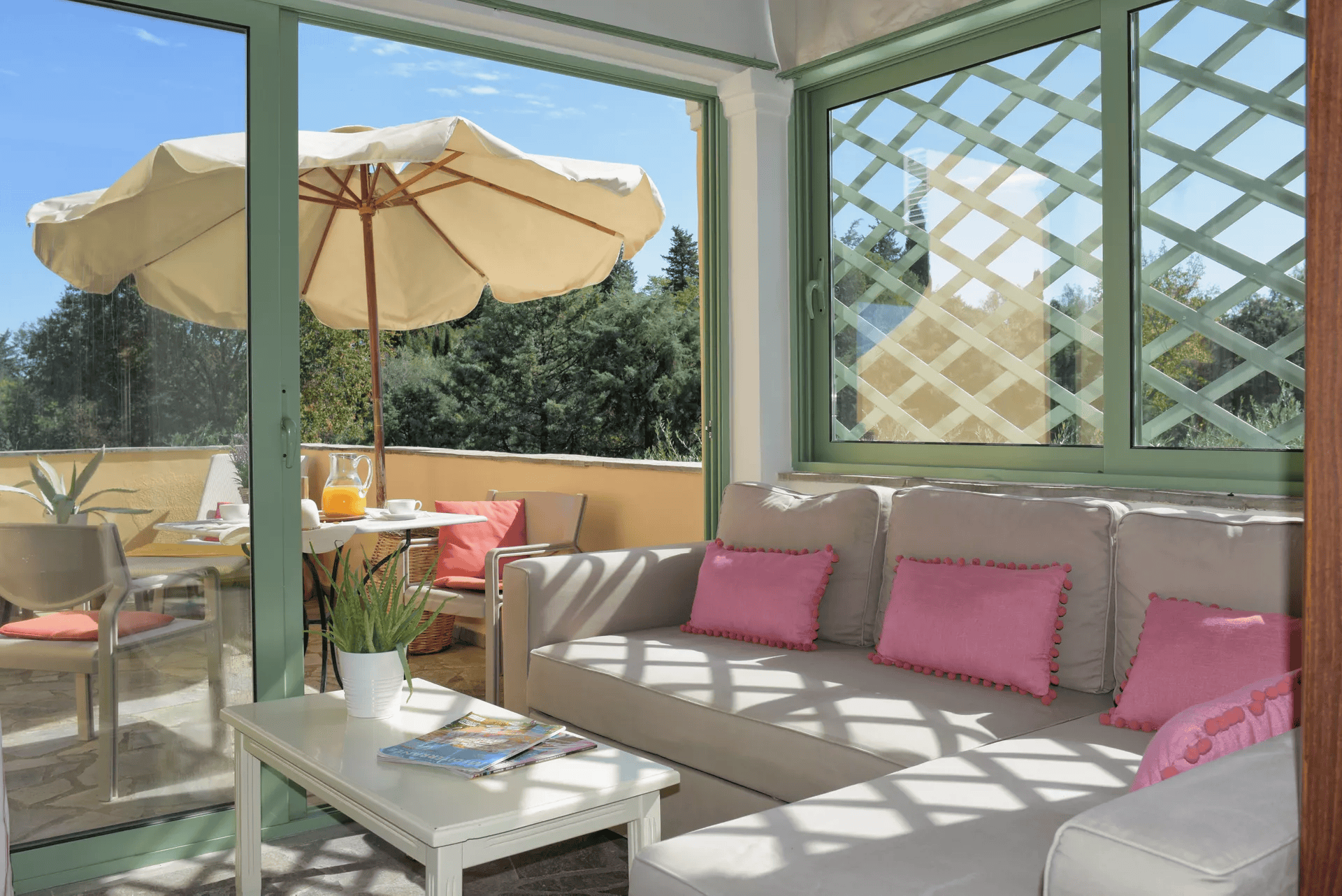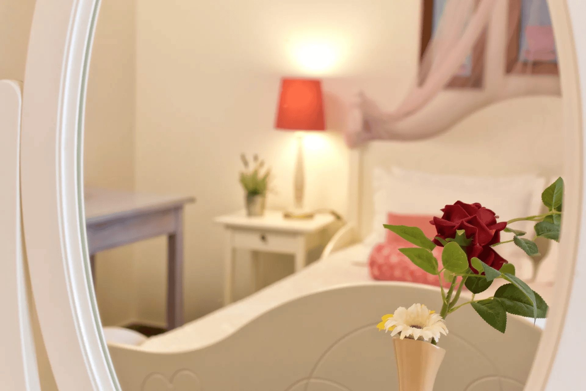 Η ρομαντική junior σουίτα προσφέρει στους επισκέπτες μια ειδυλλιακή απόδραση αφού είναι διακοσμημένη με κομψά αντικείμενα, απαλά χρώματα και υπέροχη θέα στον κήπο. Η junior σουίτα είναι ιδανική για ζευγάρια, και φιλοξενεί δύο άτομα. Με ένα υπέροχο δωμάτιο, ένα άνετο σαλονάκι, πλήρως εξοπλισμένη κουζινούλα, με ό,τι επιθυμεί κανείς και μια υπέροχη βεράντα που βλέπει τον κήπο αυτή η άνετη και ρομαντική σουίτα υπόσχεται στους επισκέπτες παραμυθένια διαμονή.