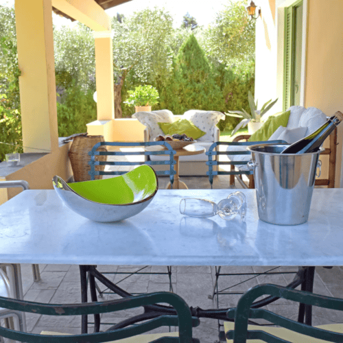 Αν διαλέξετε την Κερκυραϊκή μας σουίτα θα ενθουσιαστείτε από τις ανέσεις της και την μαγευτική θέα του κήπου μας. Διακοσμημένη με όμορφα και κομψά αντικείμενα και εξοπλισμένη με οτιδήποτε χρειαστείτε από πλυντήριο-στεγνωτήριο πιάτων-ρούχων, σιδερωτήριο, μέχρι και φούρνο, η σουίτα αποτελεί μια παραμυθένια επιλογή.